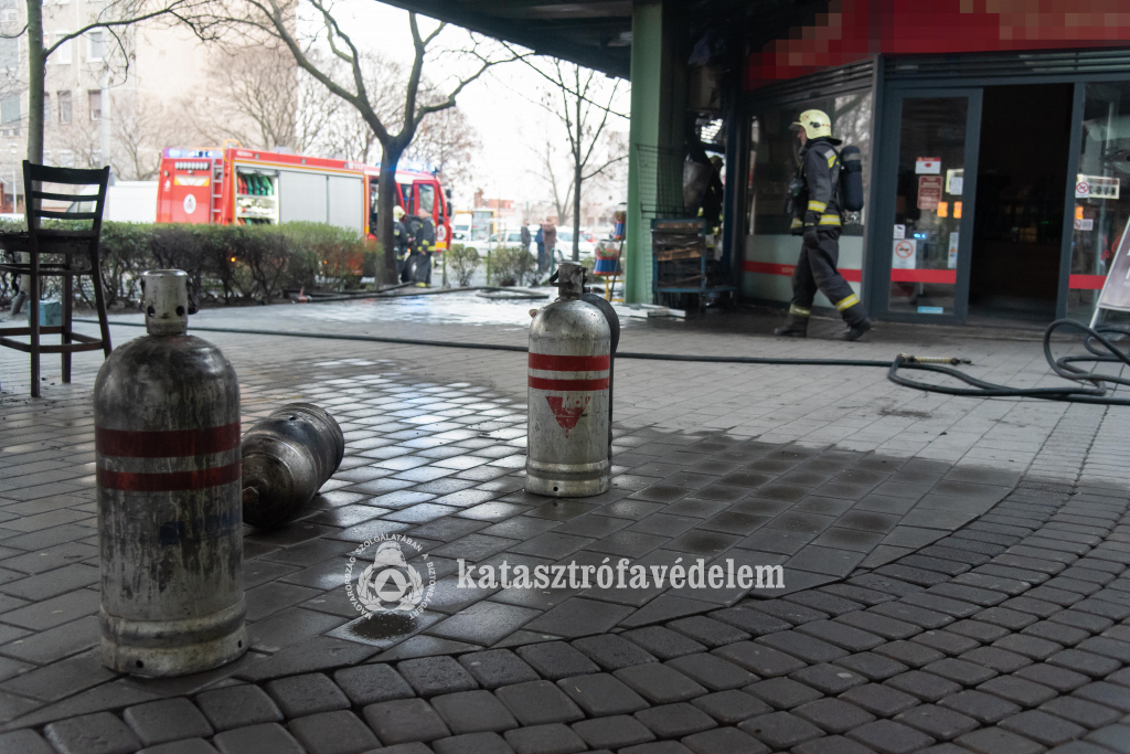 A katasztrófavédelmi egységek nagy erőkkel vonultak a helyszínre és gyorsan megfékezték a robbanás következtében keletkező tüzet. A tűzoltók négy gázpalackot hoztak ki az égő helyiségből. A tűz nem terjedt át a szomszédos üzletekre.