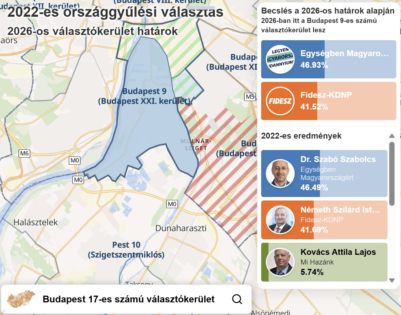 Az előző három választáson Budapest 17-es választókerülete Csepel–Soroksár volt, Szabó Szabolcs háromszor győzte le itt Németh Szilárdot. Az új beosztás szerint az ellenzékhez húzó Csepel a 9-es számú választókerület központja lett, a fideszesebb Soroksárt pedig átrakták a szomszédos, 16-os választókerületbe – írja a Telex.